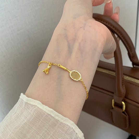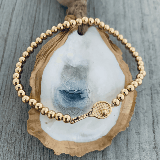 SAVE 20%Gold Beaded Tennis Racket Bracelet