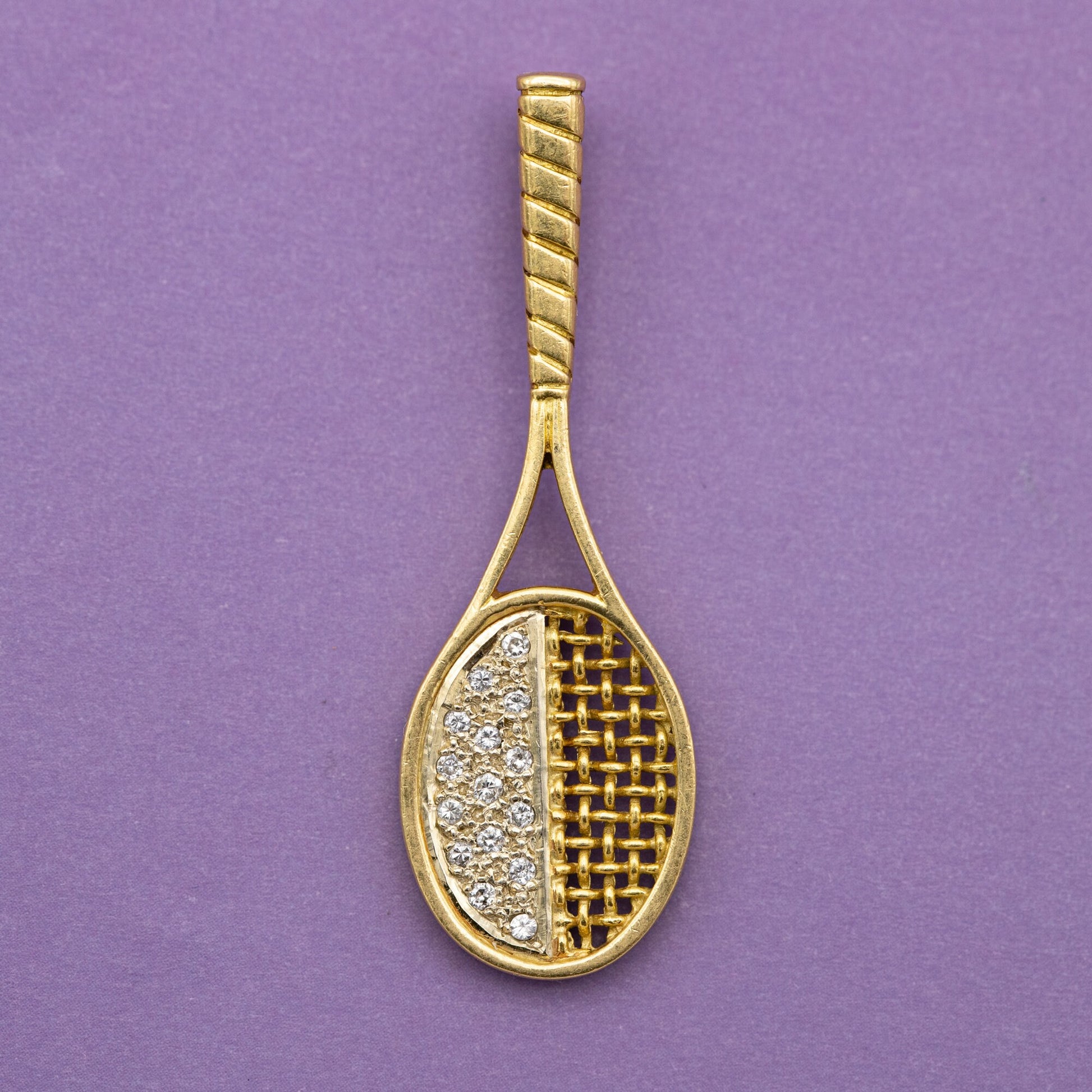 Exquisite 18K Gold Tennis Racket Charm with Diamonds
