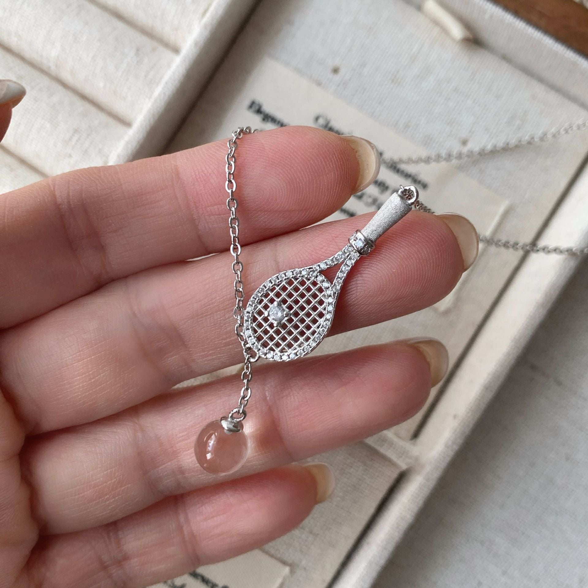 Graceful and refined, the Court Elegance Necklace transforms the spirit of tennis into timeless jewelry. Crafted in 925 sterling silver, the pendant features a sparkling racket silhouette finished with a delicate drop pearl, symbolizing the beauty of the game in motion.